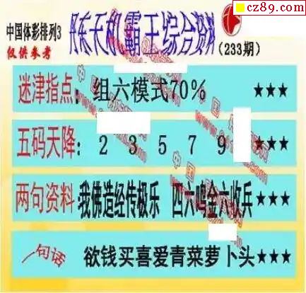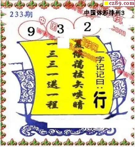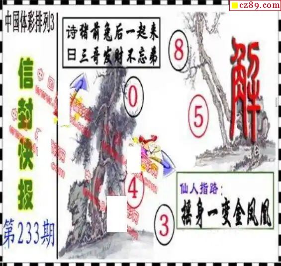 2024年233期牛彩网体彩P3画迷图谜汇总分享