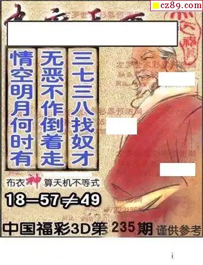 佐罗世家2024235期3d图谜