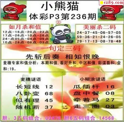 2024年236期牛彩网体彩P3画迷图谜汇总分享