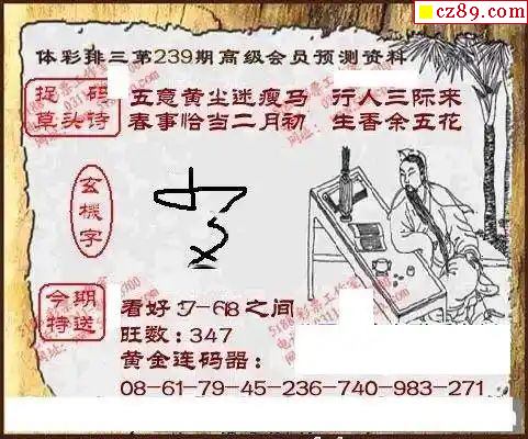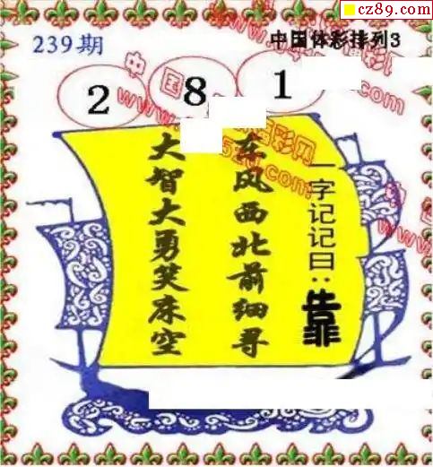 2024年239期牛彩网体彩P3画迷图谜汇总分享
