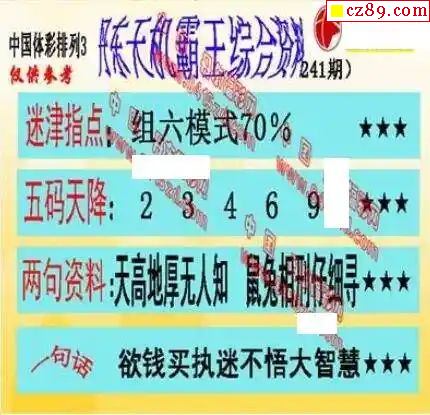 2024年241期牛彩网体彩P3画迷图谜汇总分享