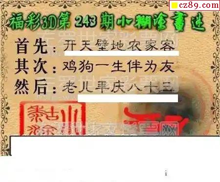 2025332期福彩3D图谜汇总