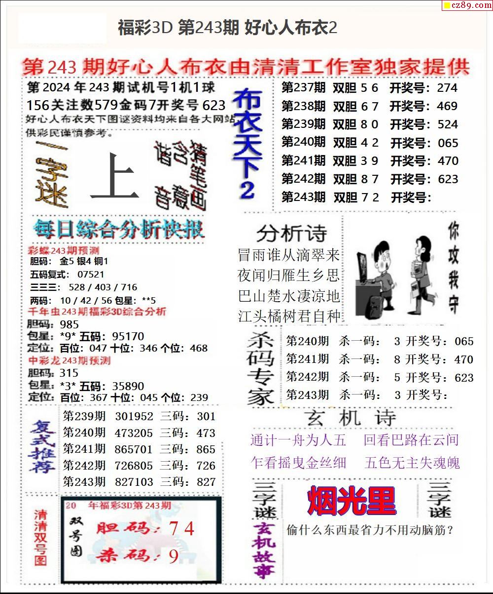 福彩3D2025331期 万家图谜三国胆拖杀图