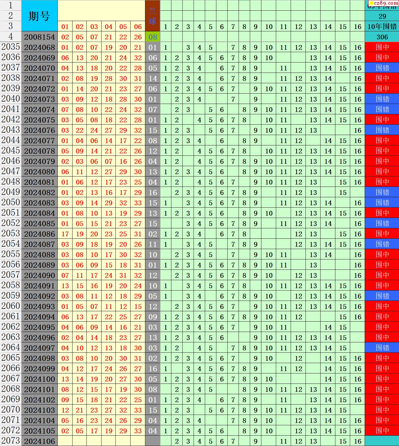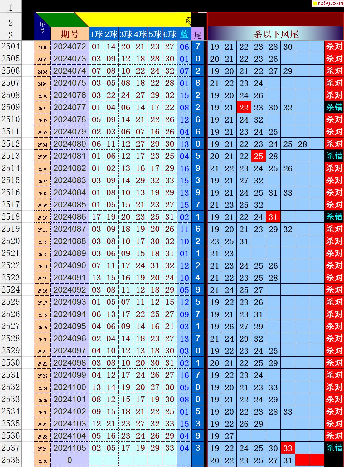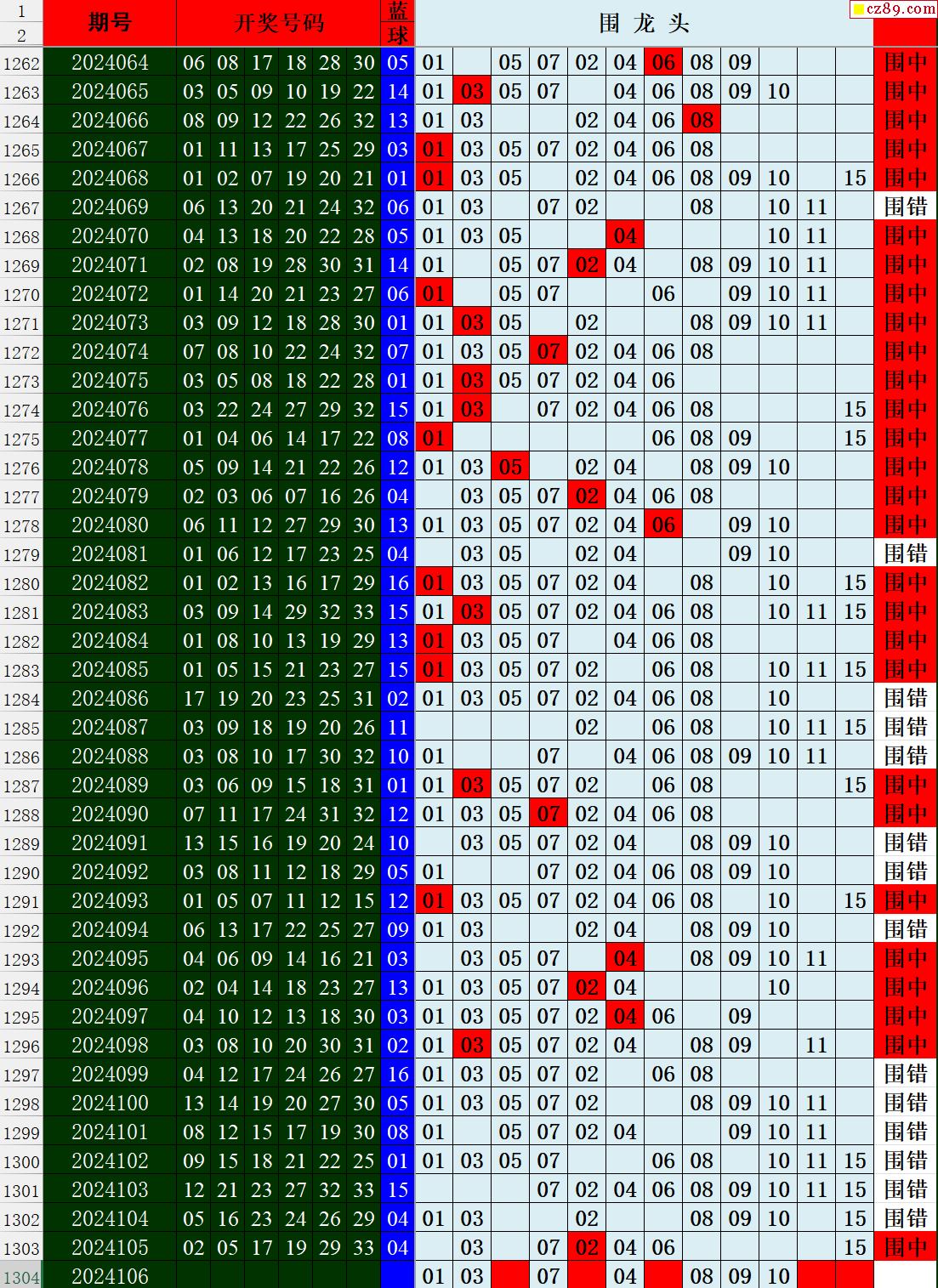 24年106期秋雨龙头凤尾走势图表