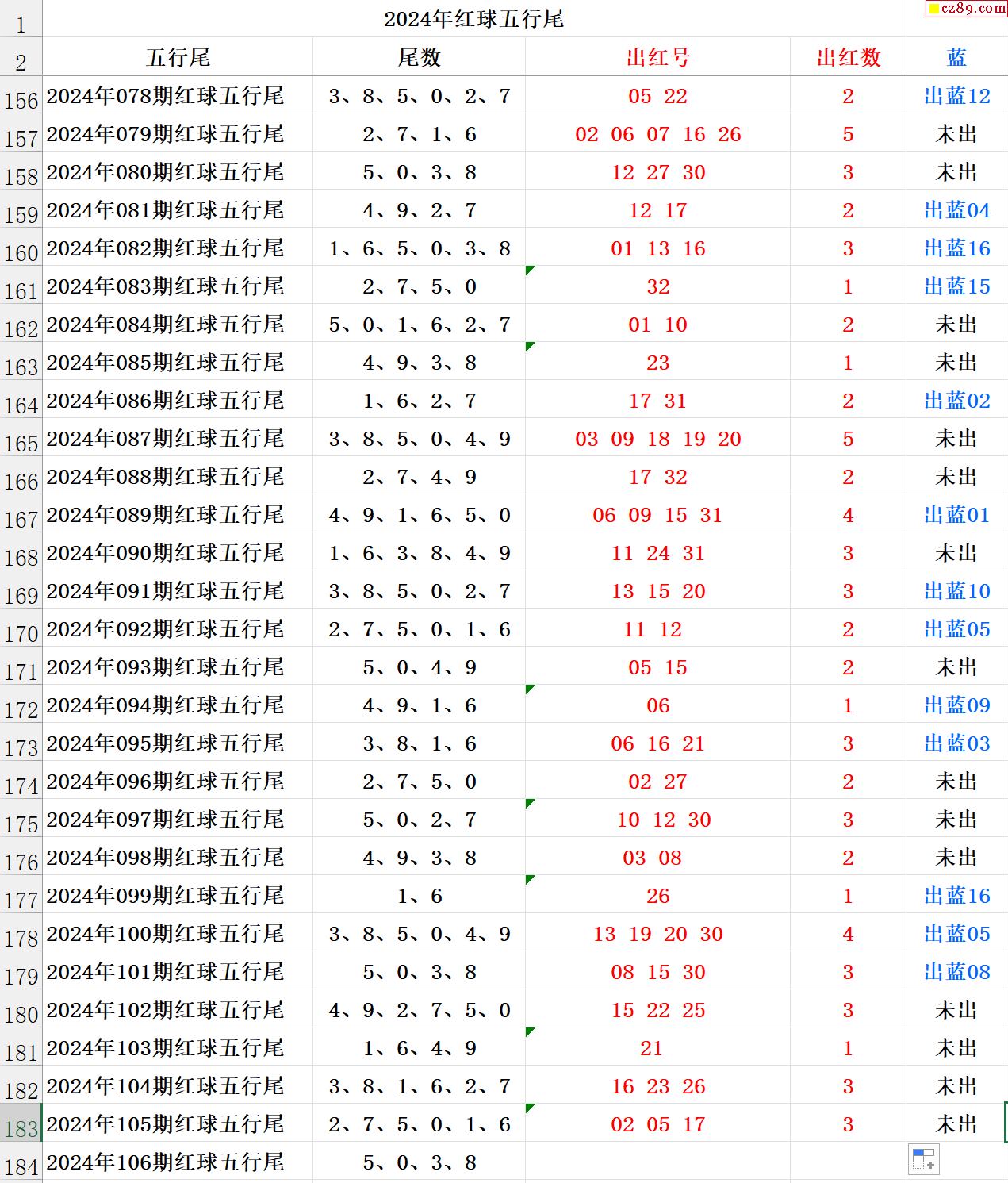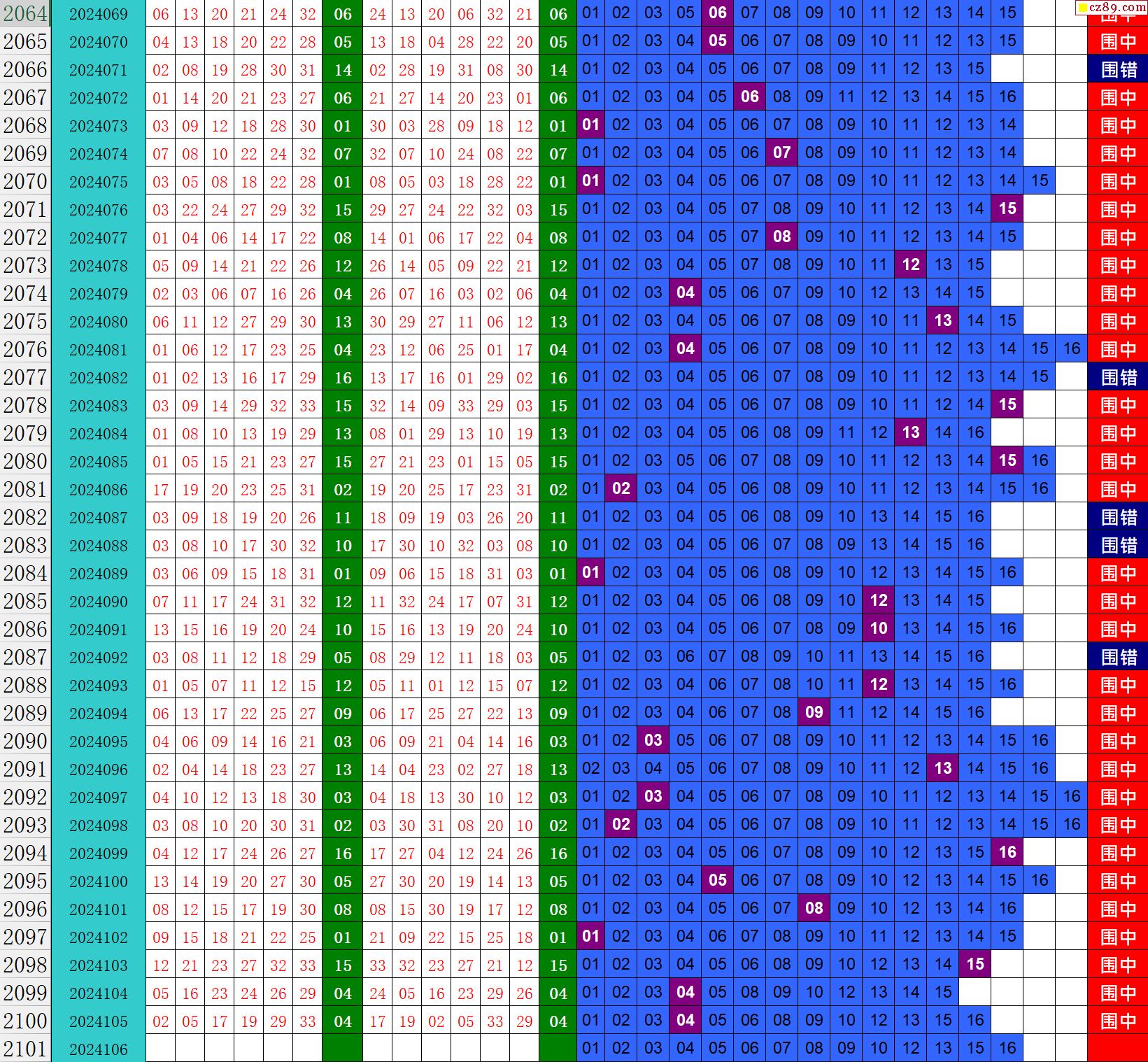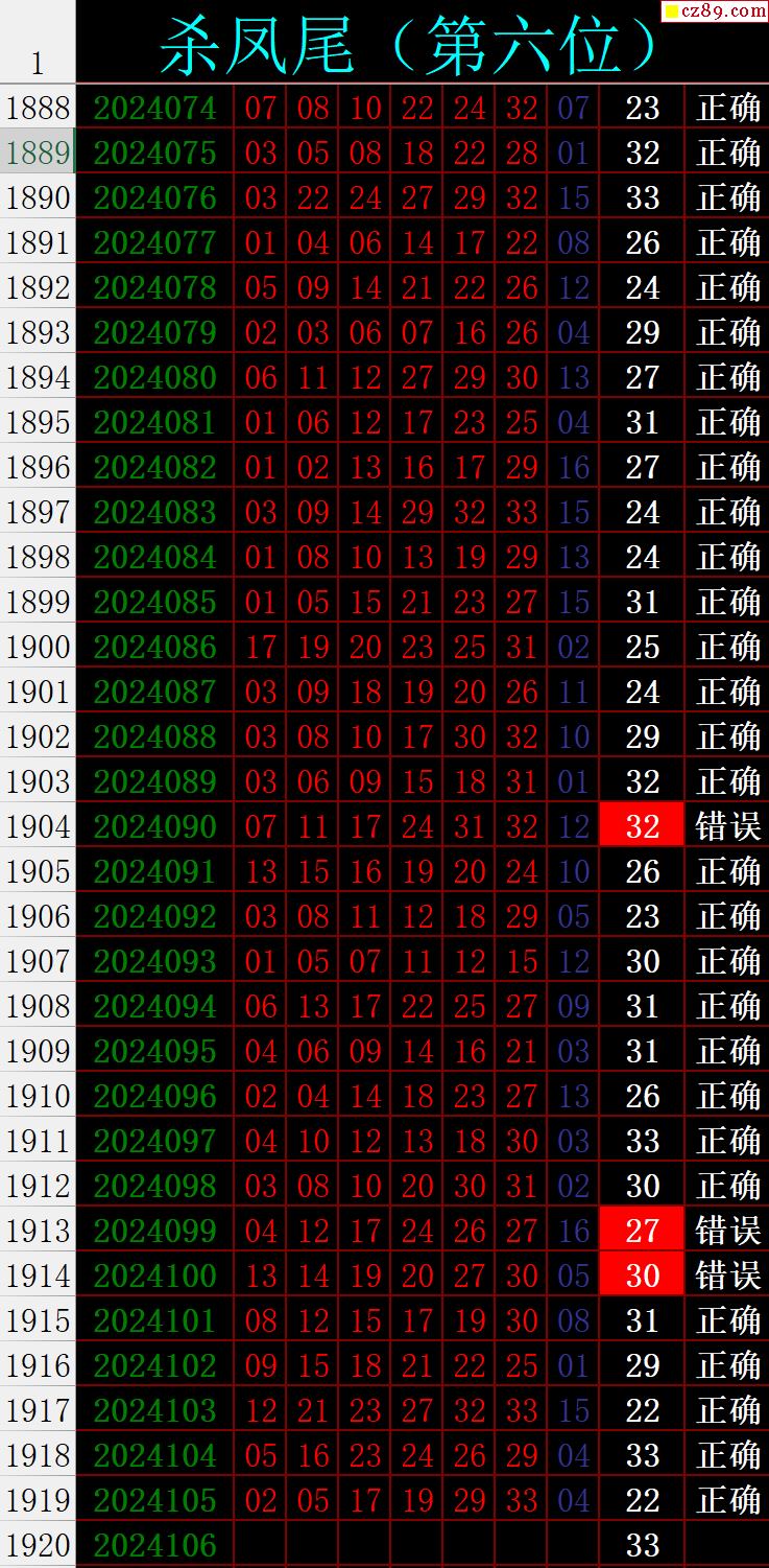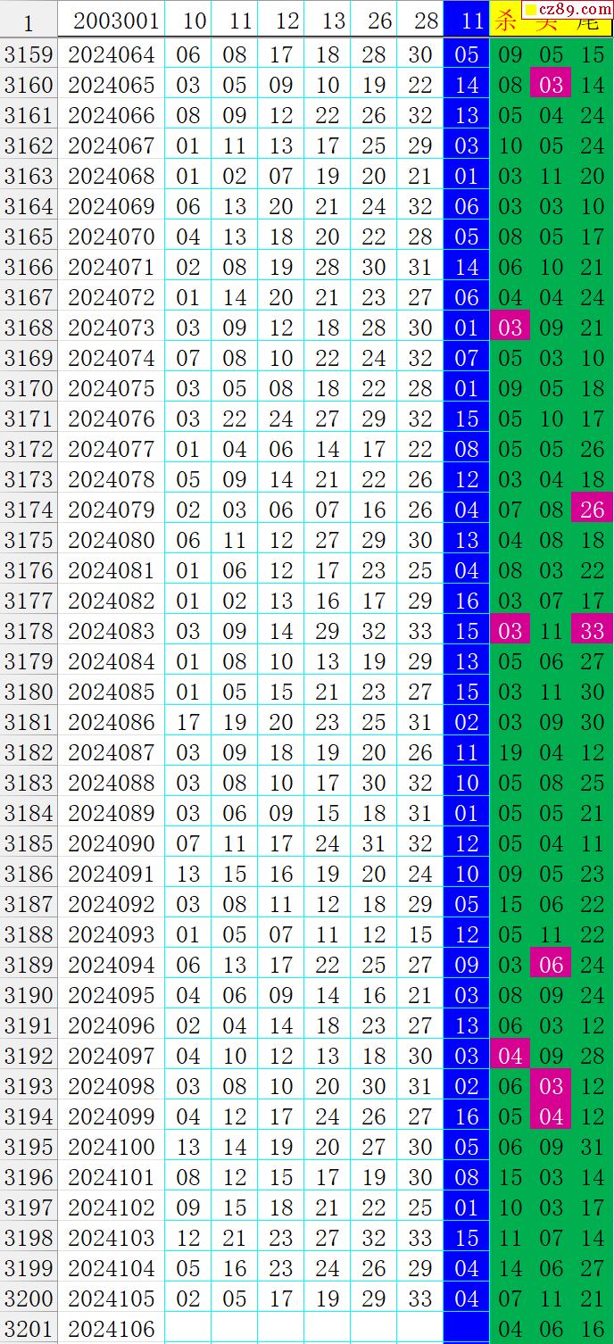 24年106期秋雨龙头凤尾走势图表
