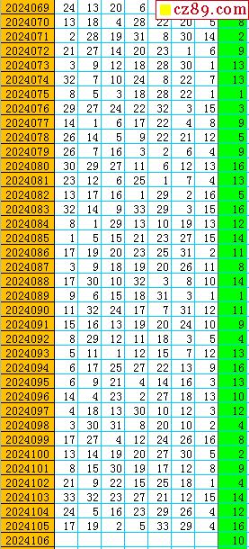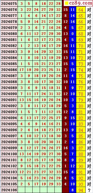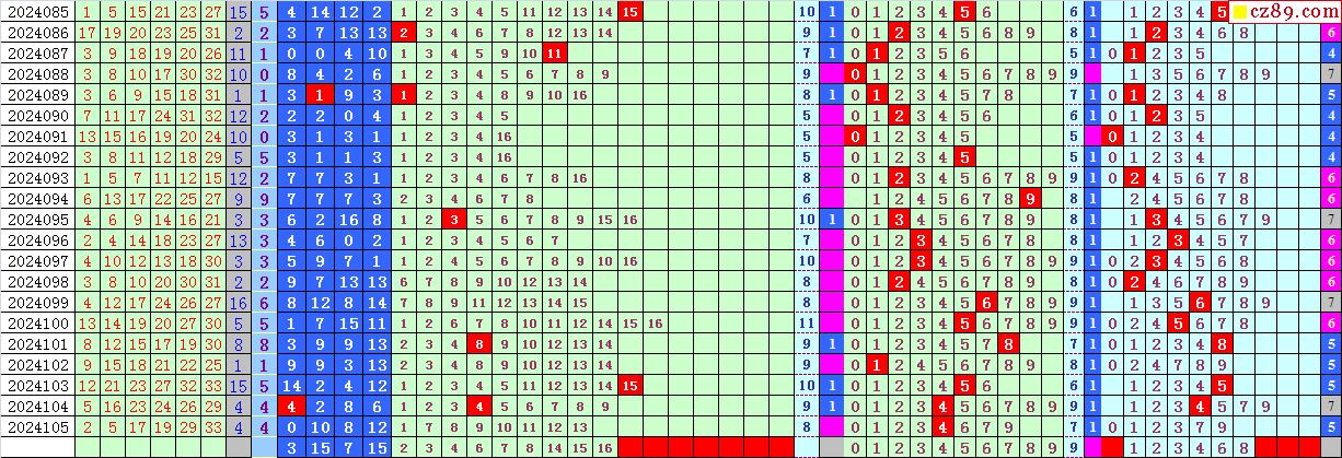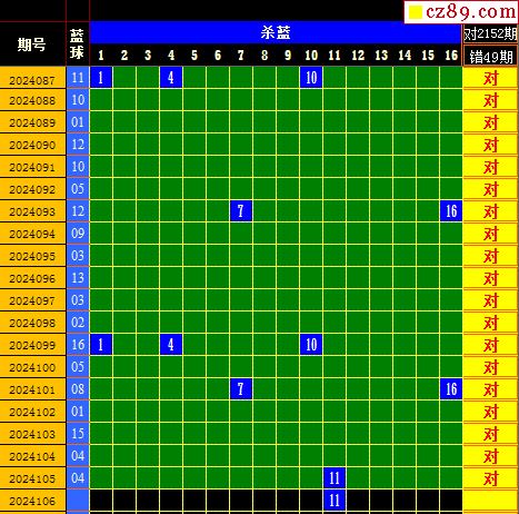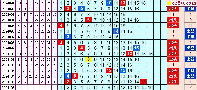 双色球2024106期阳光杀蓝汇总图表