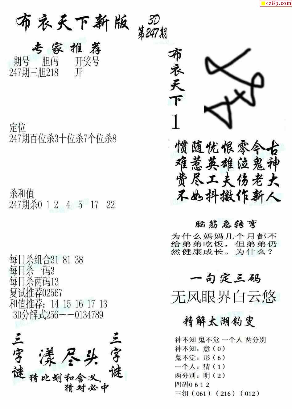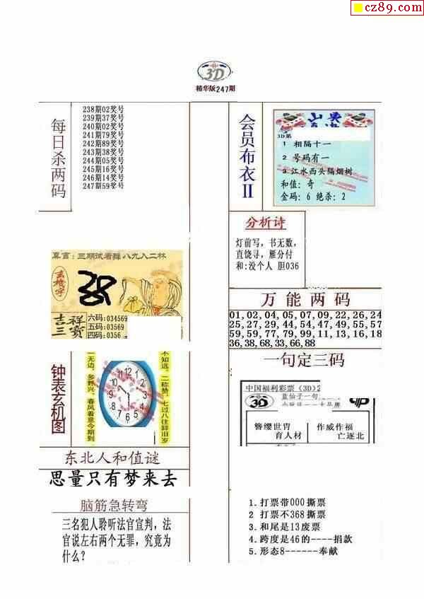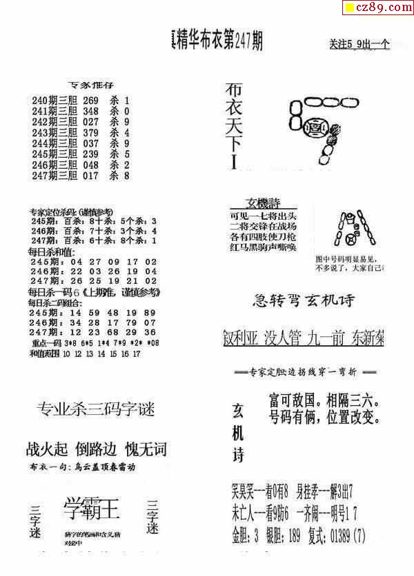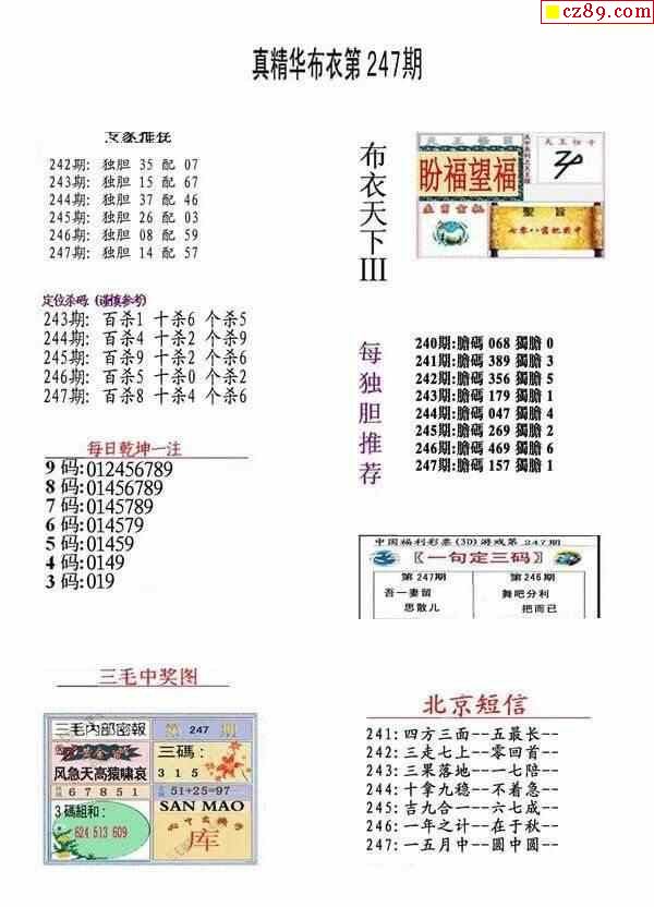 真精华布衣报2024247期3d图谜