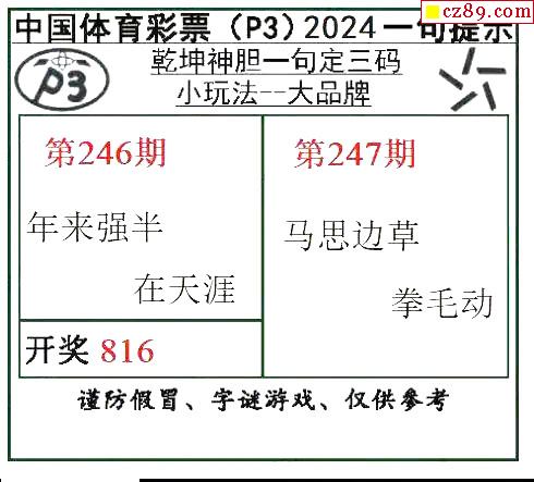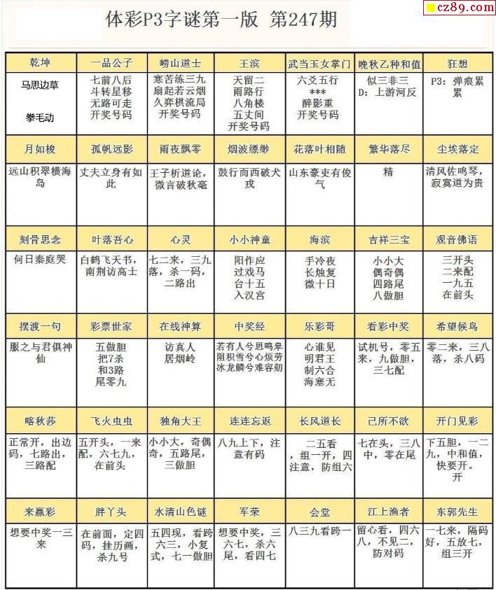 2024年247期牛彩网体彩P3画迷图谜汇总分享