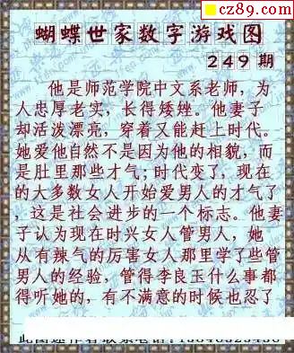 真蝴蝶世家2024249期3d图谜