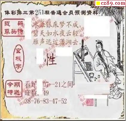 2024年251期牛彩网体彩P3画迷图谜汇总分享