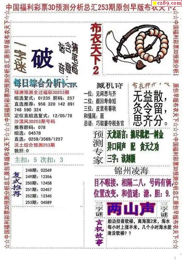 2024253期3d字谜图谜总汇
