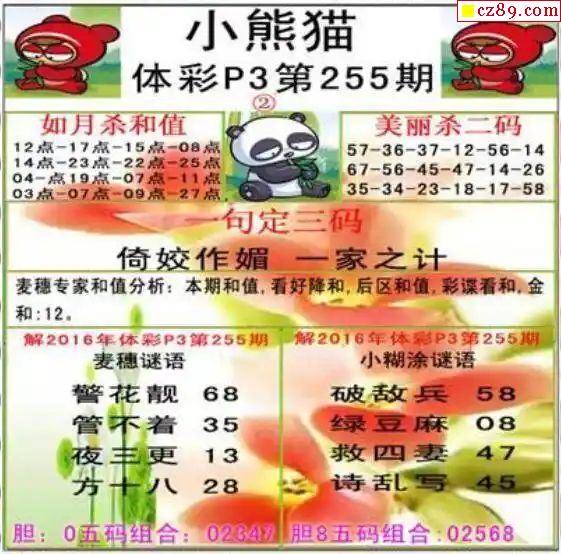 2024年255期牛彩网体彩P3画迷图谜汇总分享