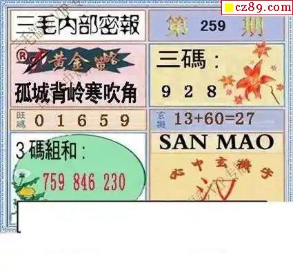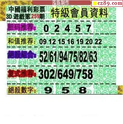 2024259期3D图谜汇总(一)