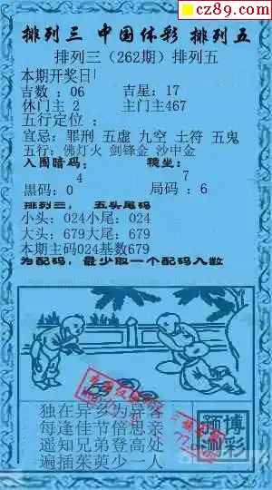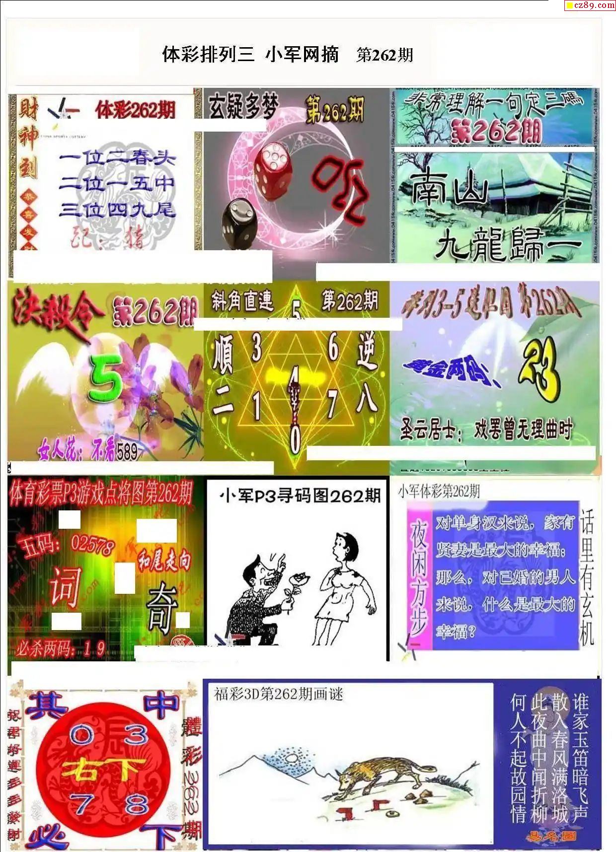 2024年262期牛彩网体彩P3画迷图谜汇总分享