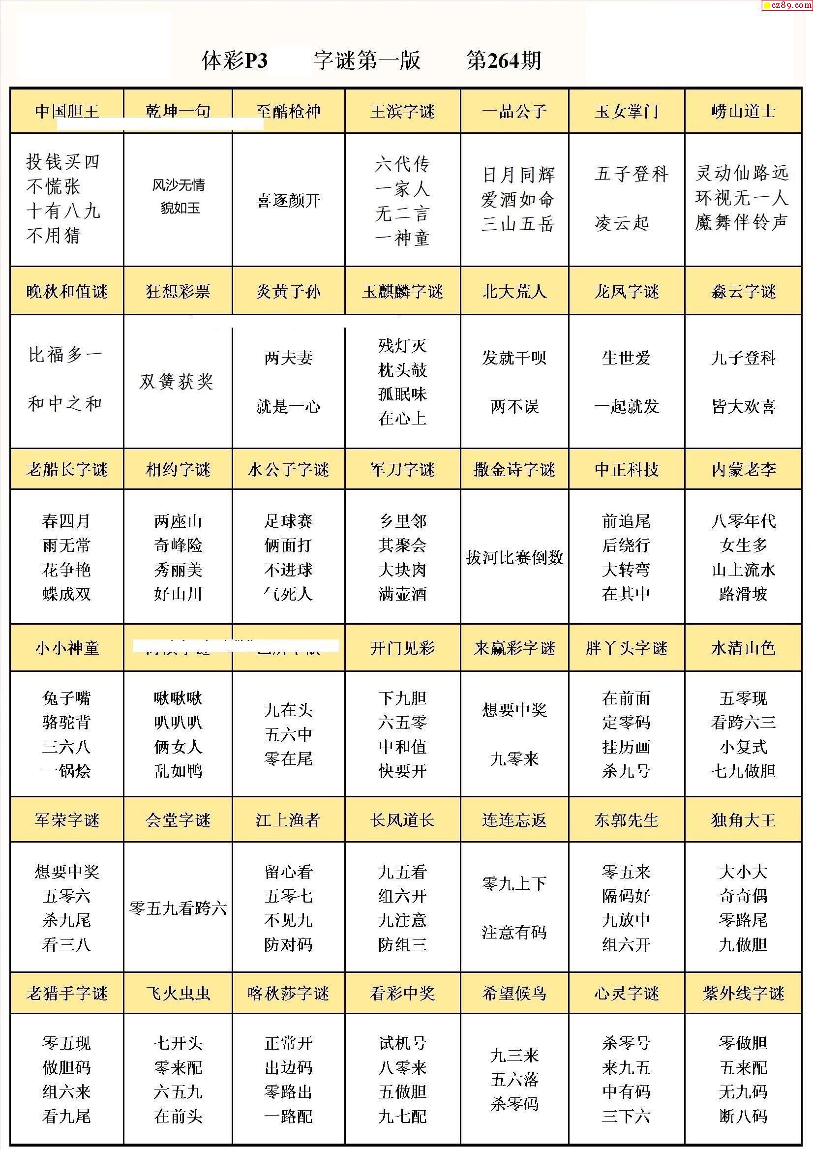 2024年264期牛彩网体彩P3画迷图谜汇总分享