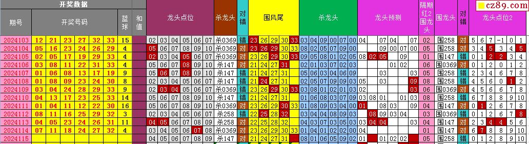 24年115期飞向阳光福彩双色球预测图表汇总