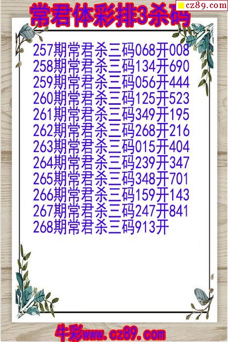 2024年268期体彩P3胆码杀码原创图总汇
