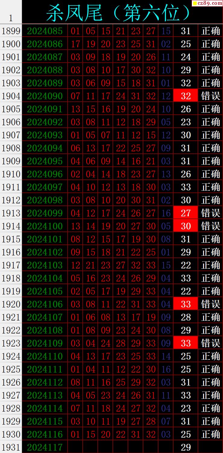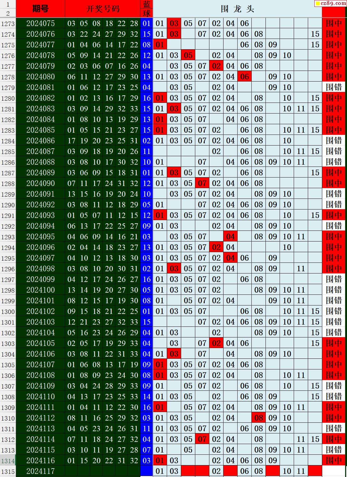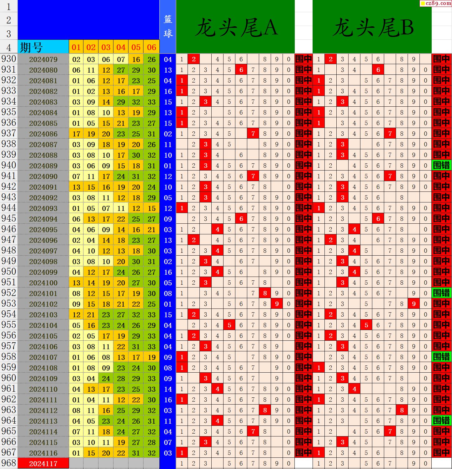 24年117期秋雨龙头凤尾走势图表