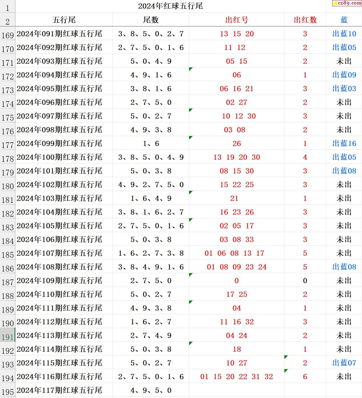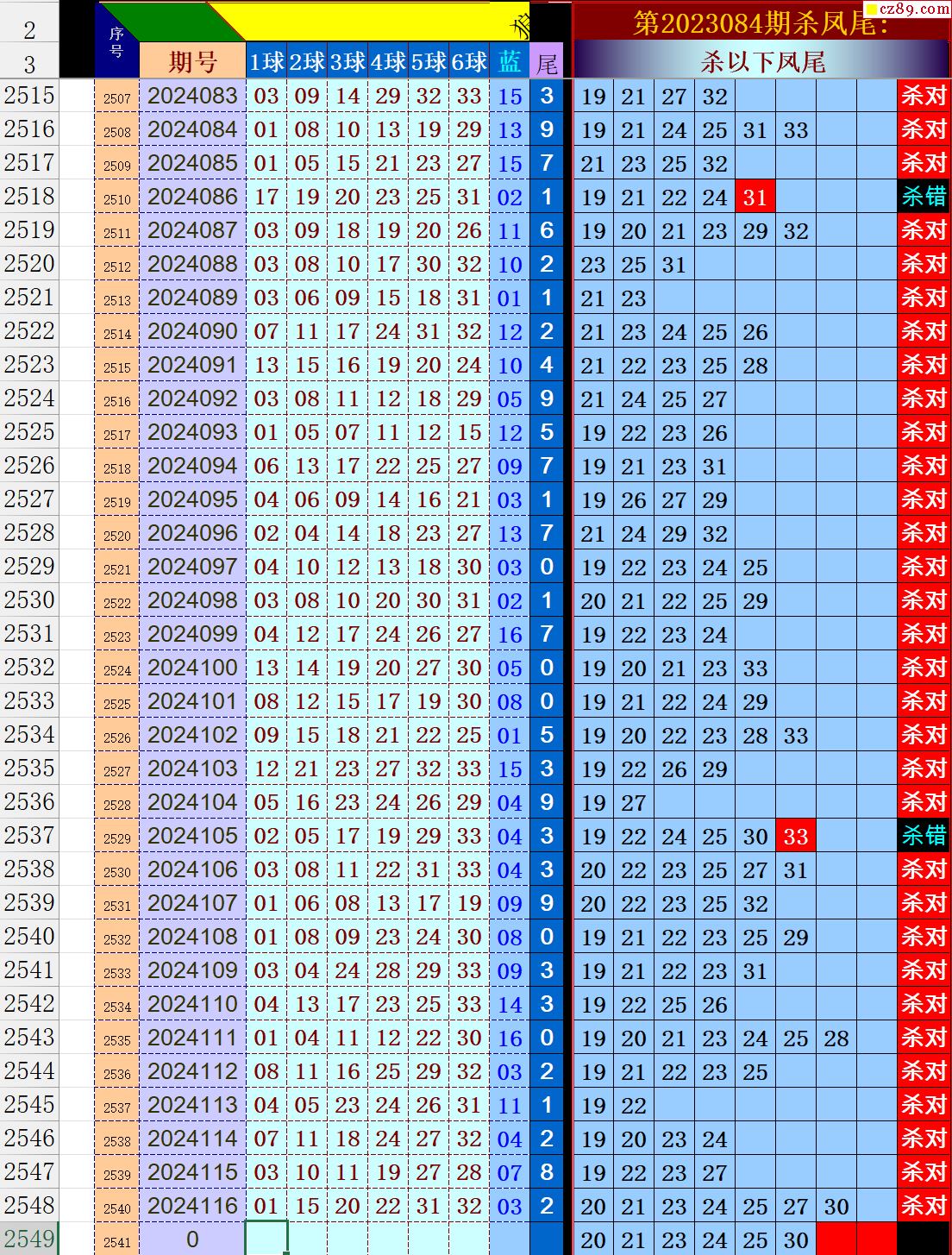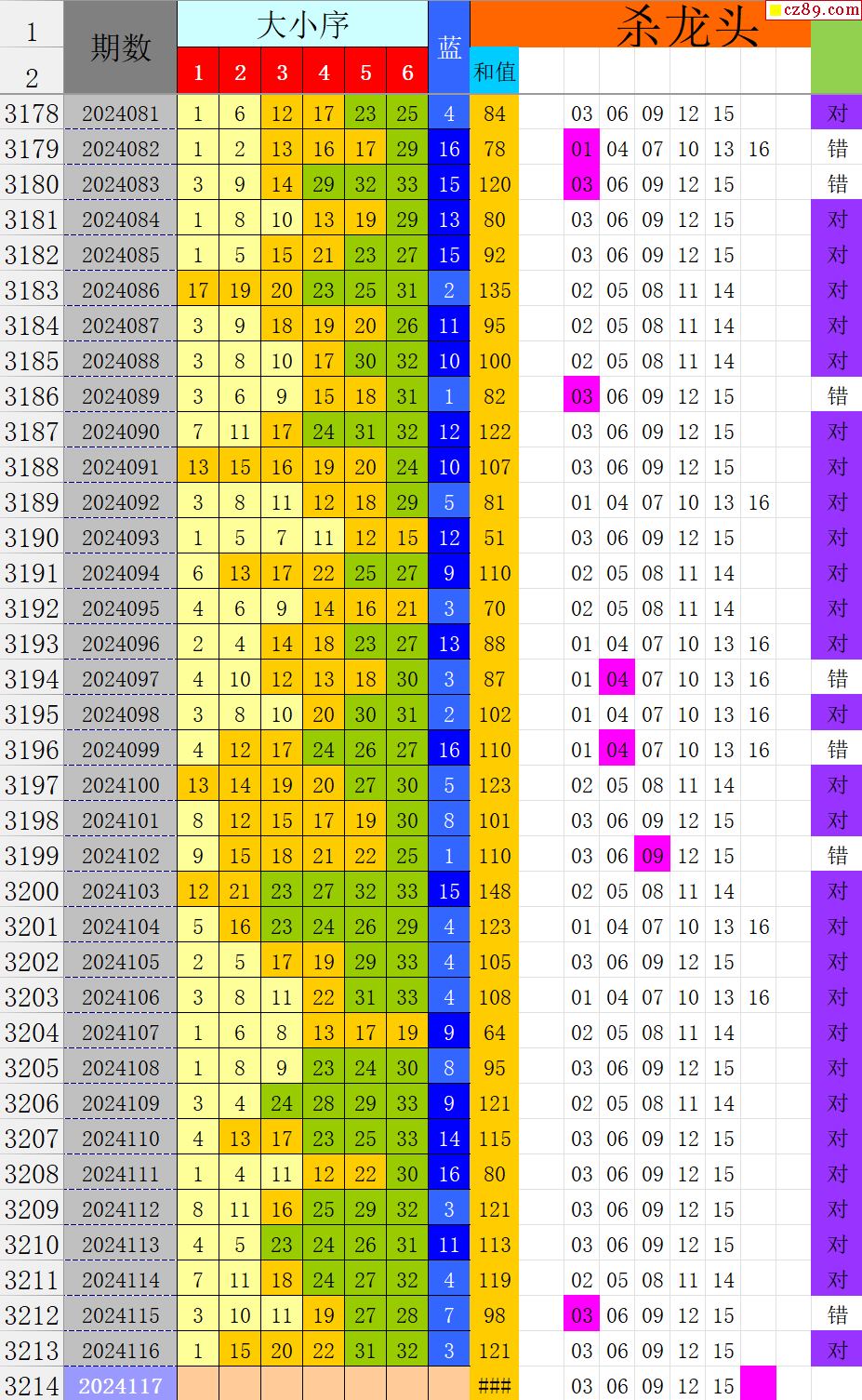 24年117期秋雨龙头凤尾走势图表