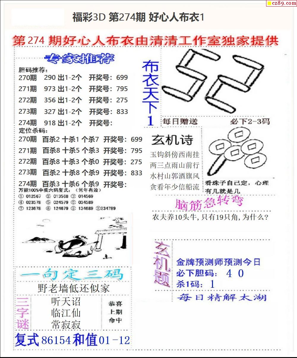 福彩3D2025336期 祁连牧哥百财纳福胆码图谜推荐
