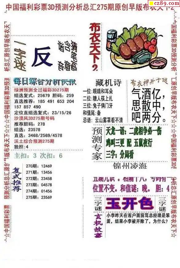 2024275期3d字谜图谜总汇