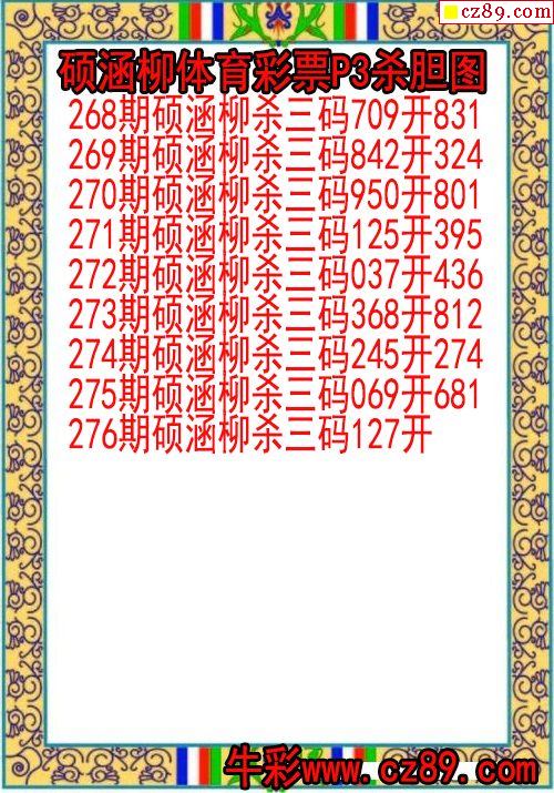 2025年340期牛彩网体彩P3画迷图谜汇总分享