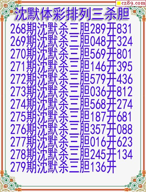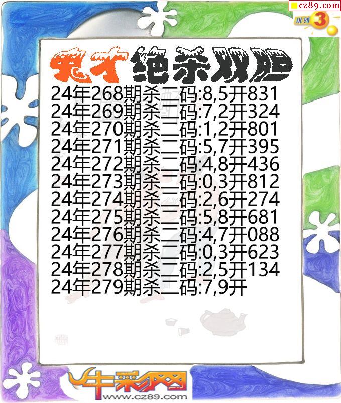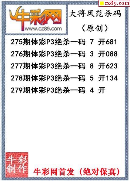 2024年279期体彩P3胆码杀码原创图总汇