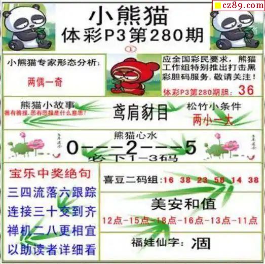 小熊猫2025330期体彩P3图谜