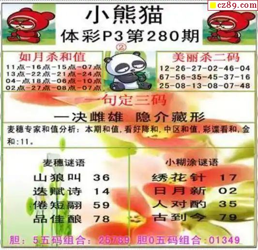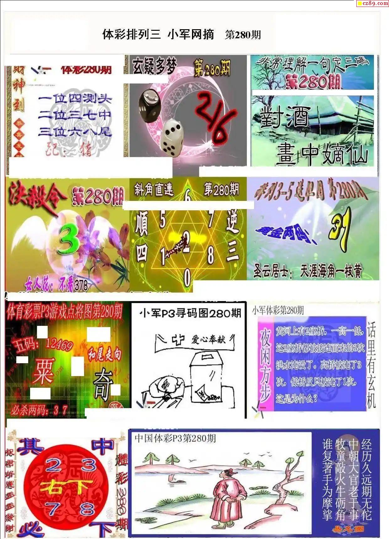 2024年280期牛彩网体彩P3画迷图谜汇总分