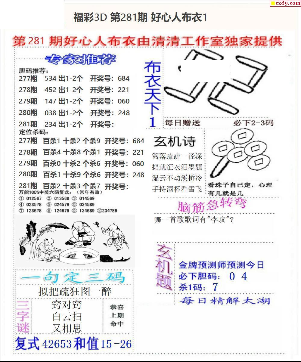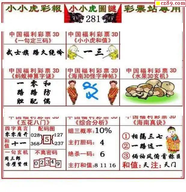 2025330期福彩3D图谜汇总