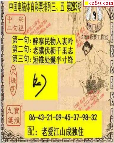 2024年283期牛彩网体彩P3画迷图谜汇总分享