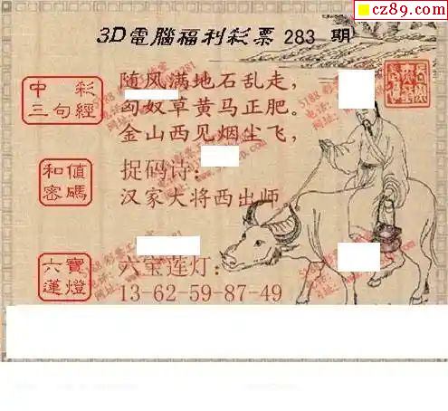 福彩3D2025330期 万家图谜三国胆拖杀图