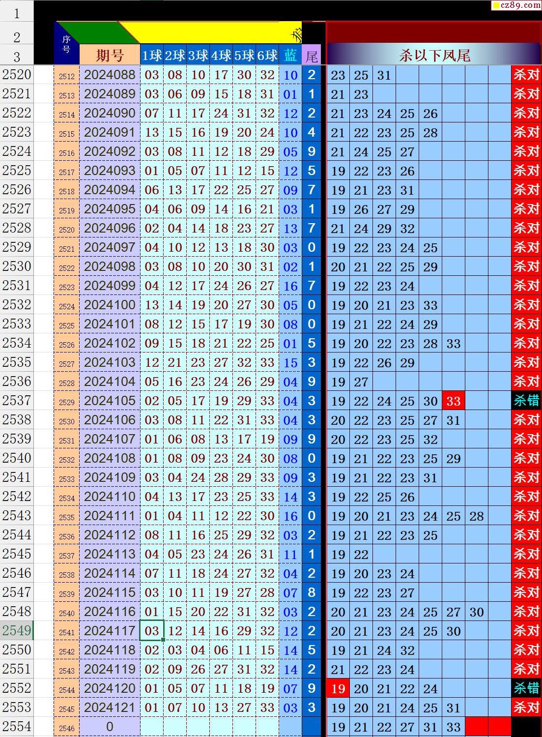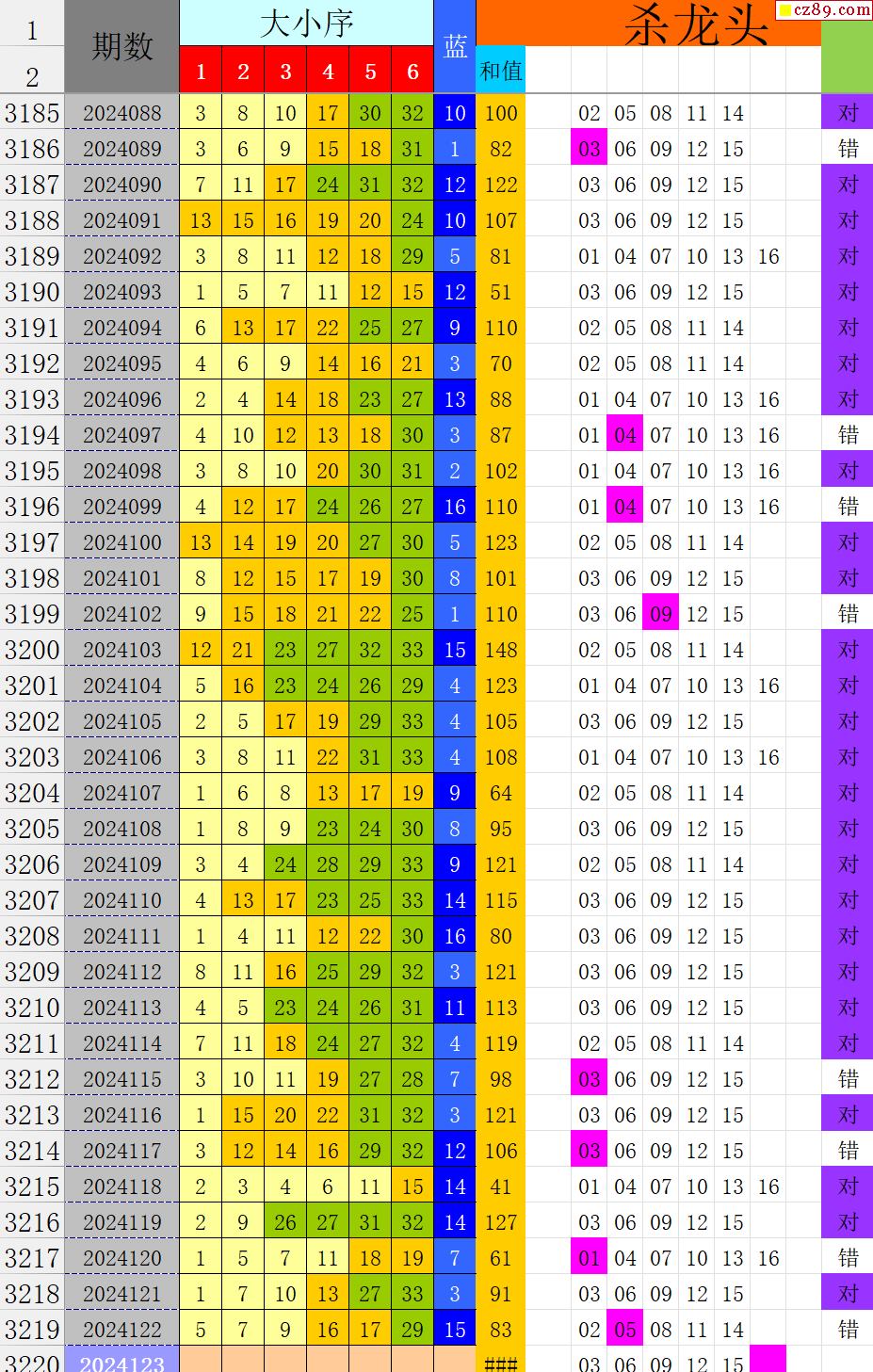 24年123期秋雨龙头凤尾走势图表