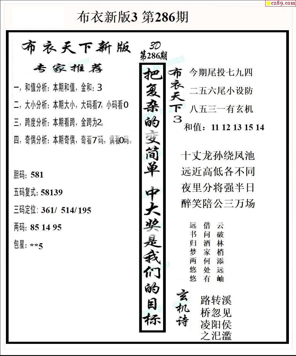 福彩3D2025330期 红尘入世锦鲤吐胆图