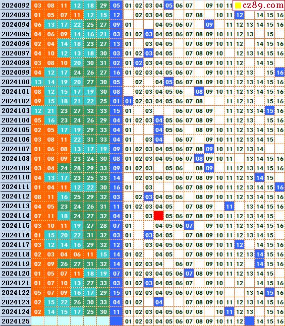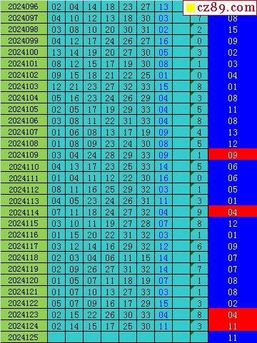 双色球2024125期阳光杀蓝汇总图表