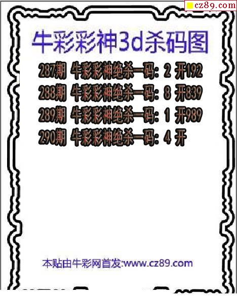 牛彩版3D预测彩报图25年333期打印版