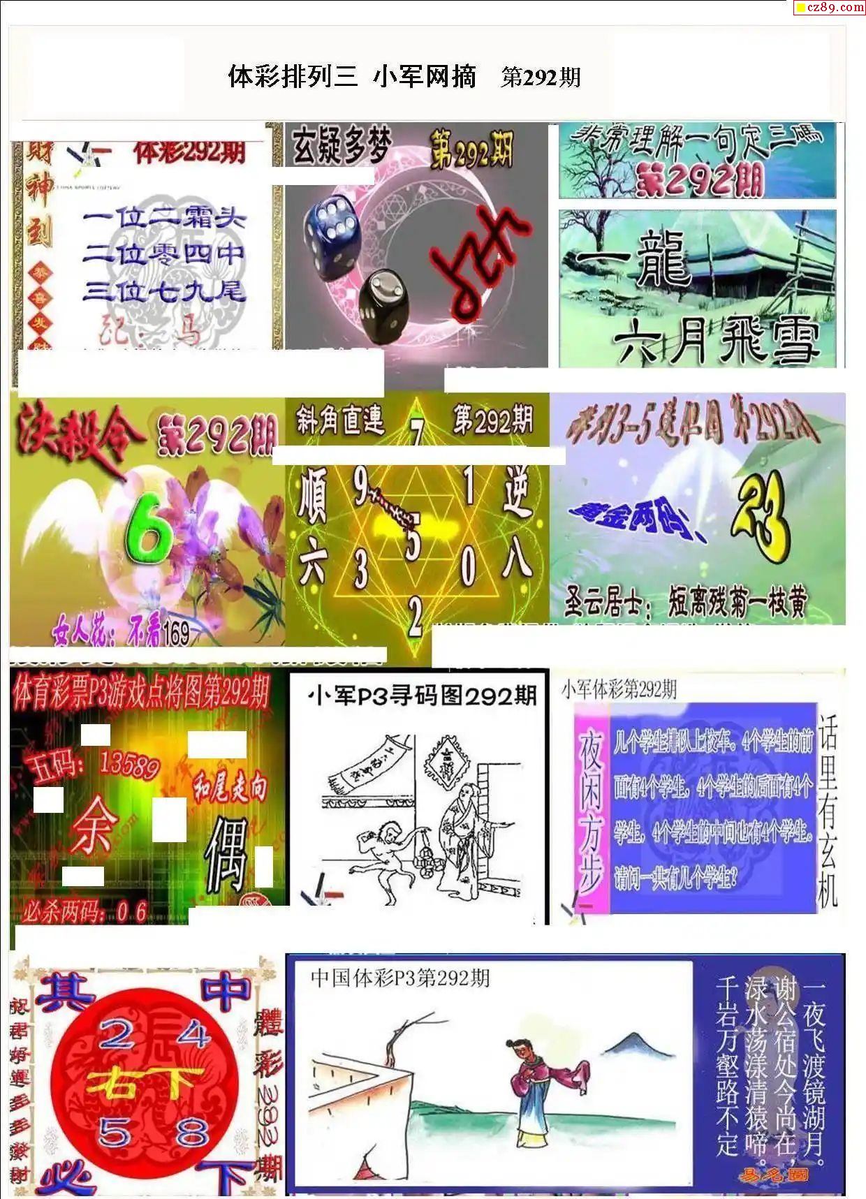 2024年292期牛彩网体彩P3画迷图谜汇总分享