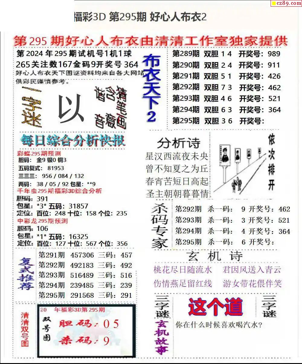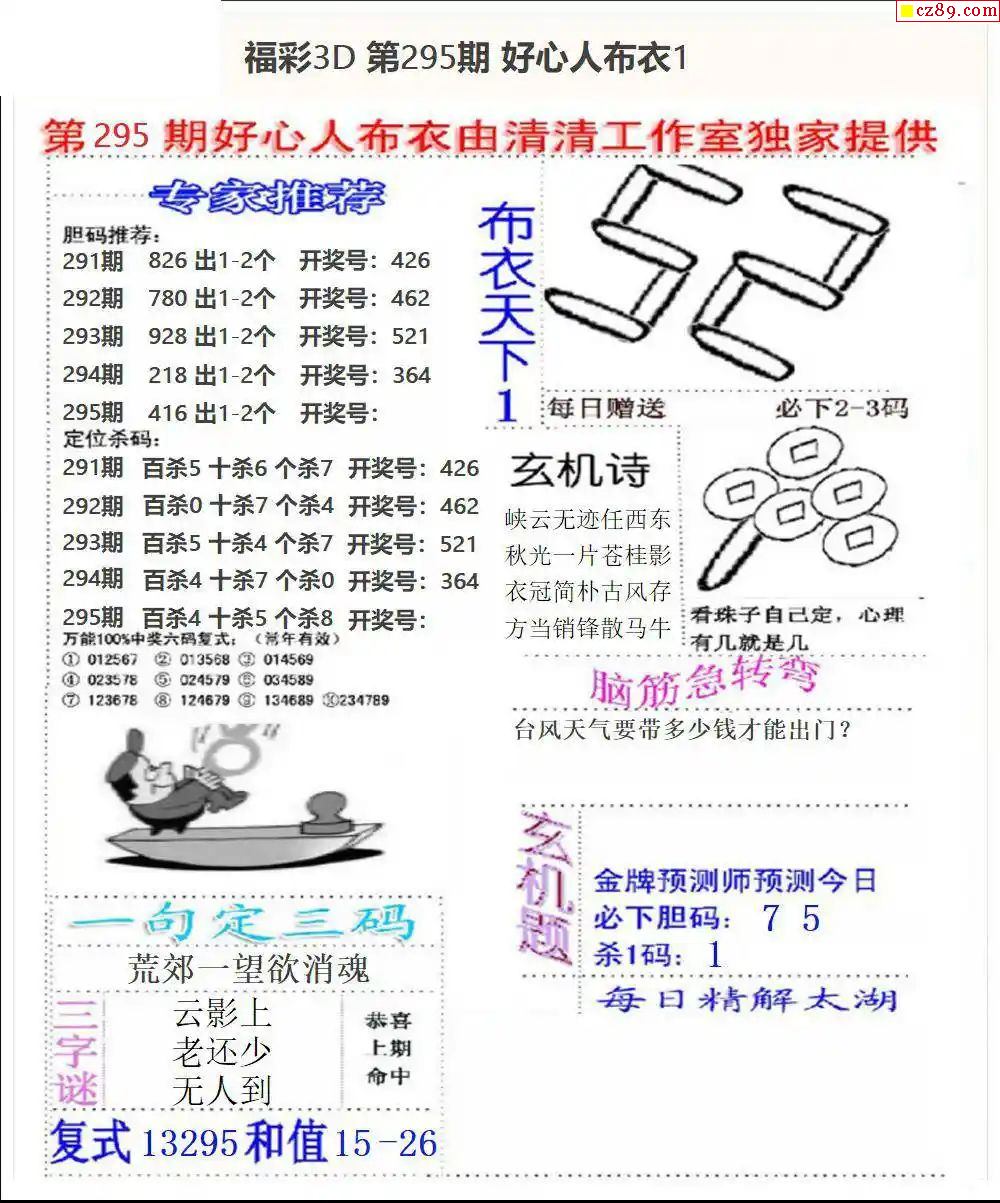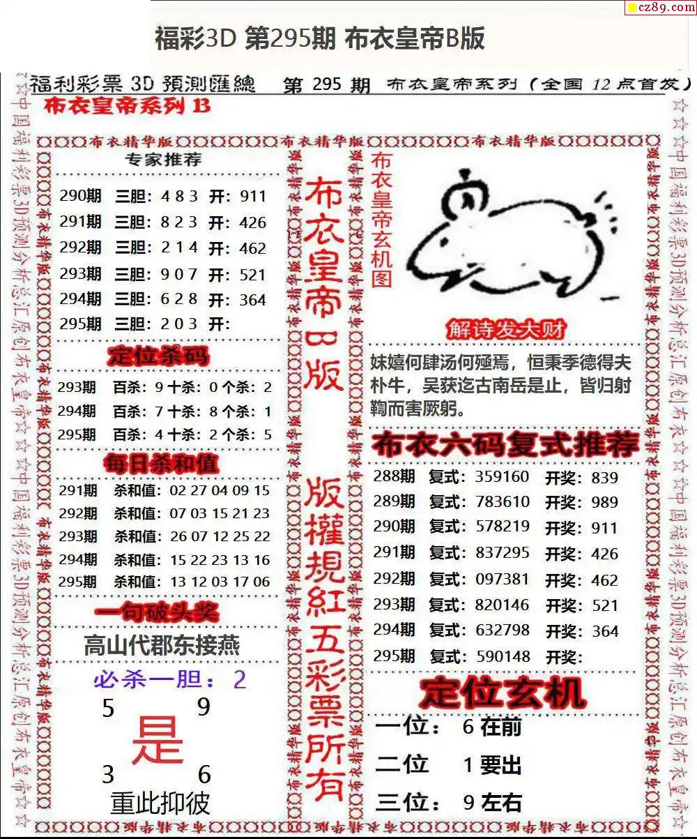 福彩3D2025331期 祁连牧哥百财纳福胆码图谜推荐