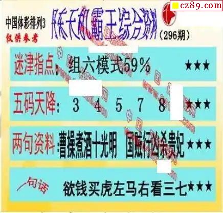 2024年296期牛彩网体彩P3画迷图谜汇总分享