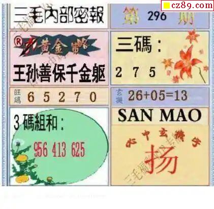 三毛图2024296期3d图谜