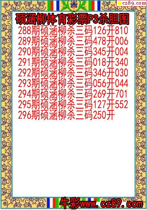2024年296期体彩P3胆码杀码原创图总汇