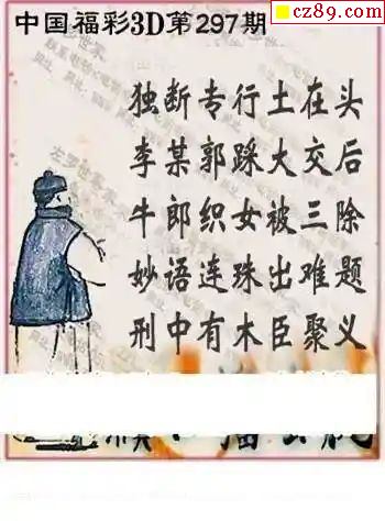 福彩3D2025335期 祁连牧哥百财纳福胆码图谜推荐