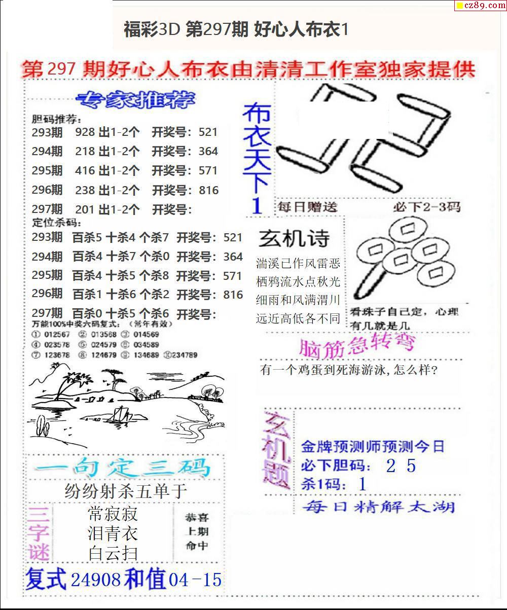 福彩3D2025334期 祁连牧哥百财纳福胆码图谜推荐