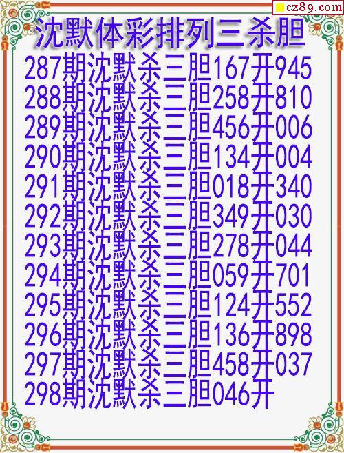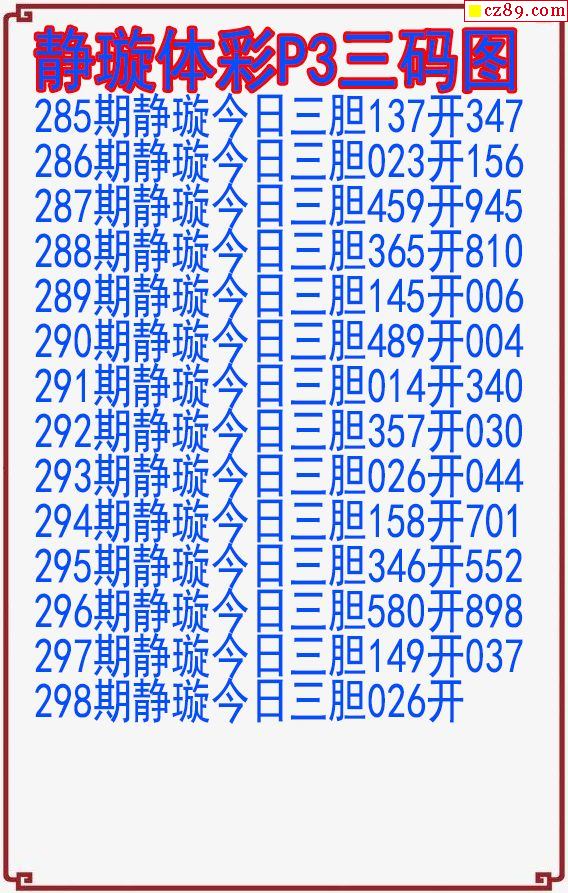 2024年298期体彩P3胆码杀码原创图总汇