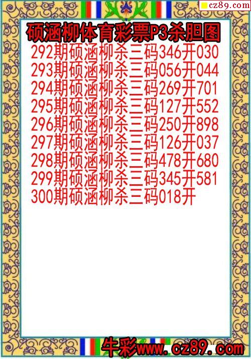 2024年300期体彩P3胆码杀码原创图总汇