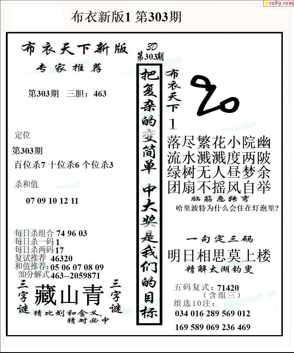 福彩3D2025330期 祁连牧哥百财纳福胆码图谜推荐