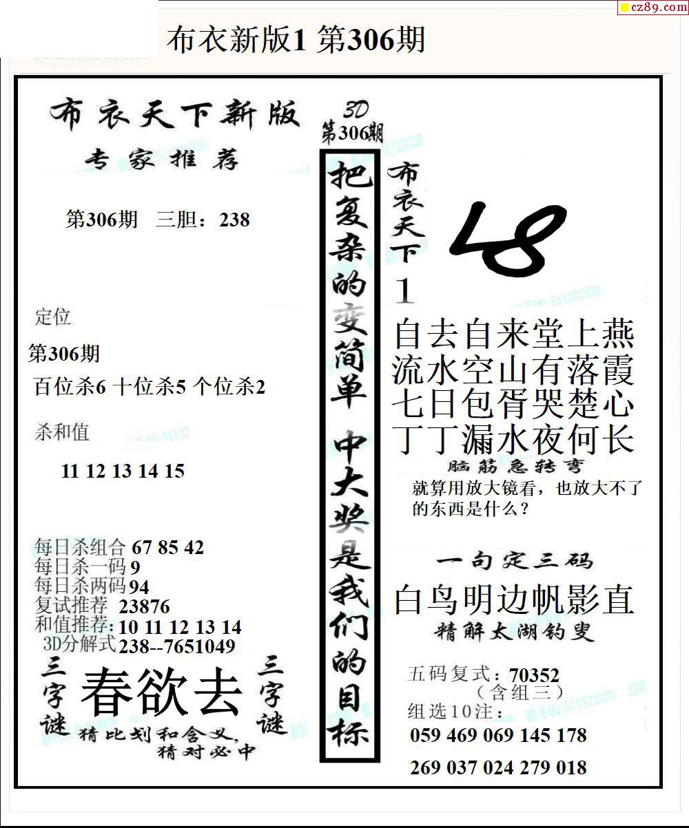 牛彩版3D字谜彩报图25年334期打印版