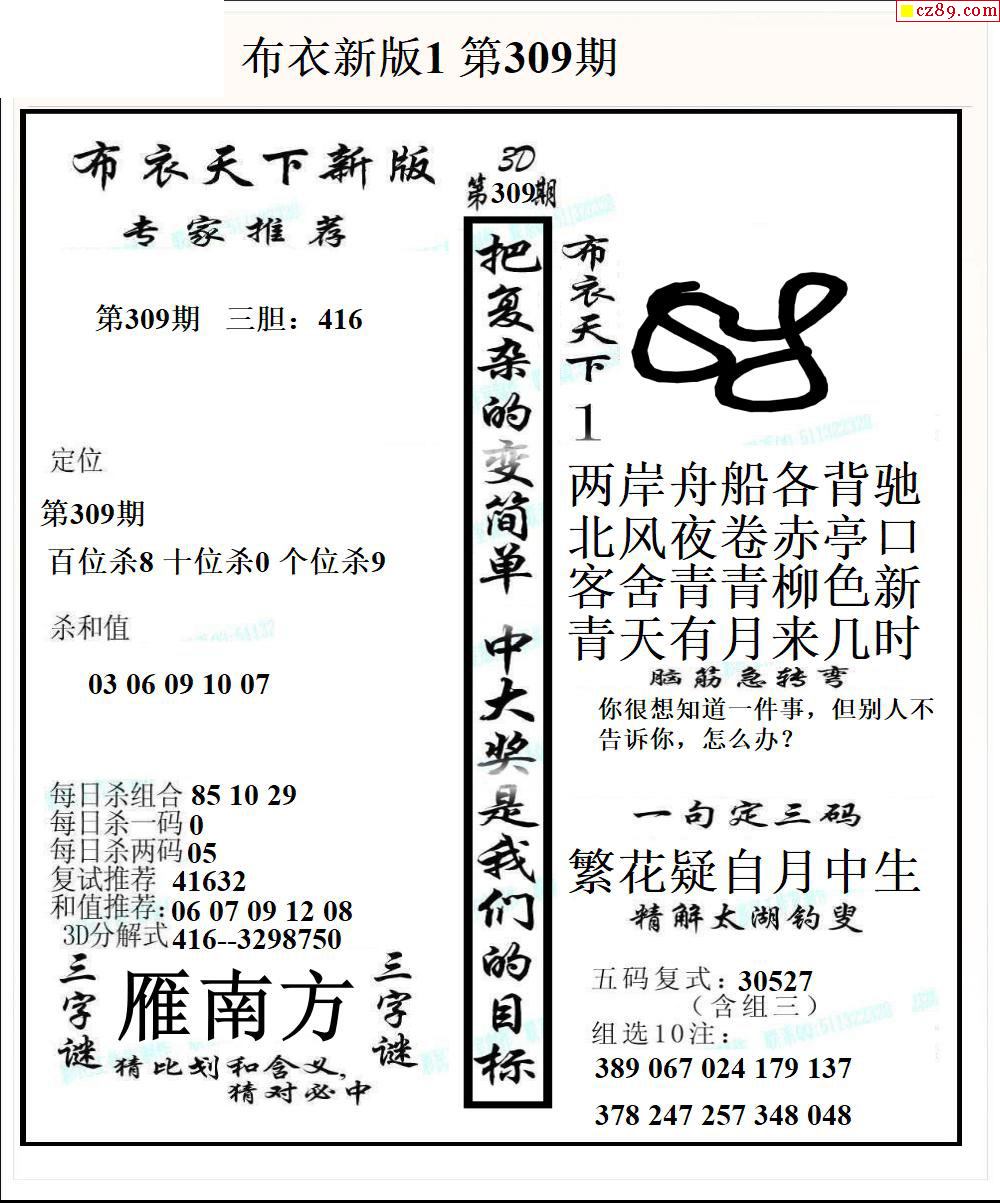 2026019期3D图谜汇总(一)