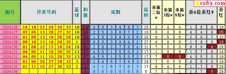 双色球142期 彩宝贝专家红蓝球杀号预测图表