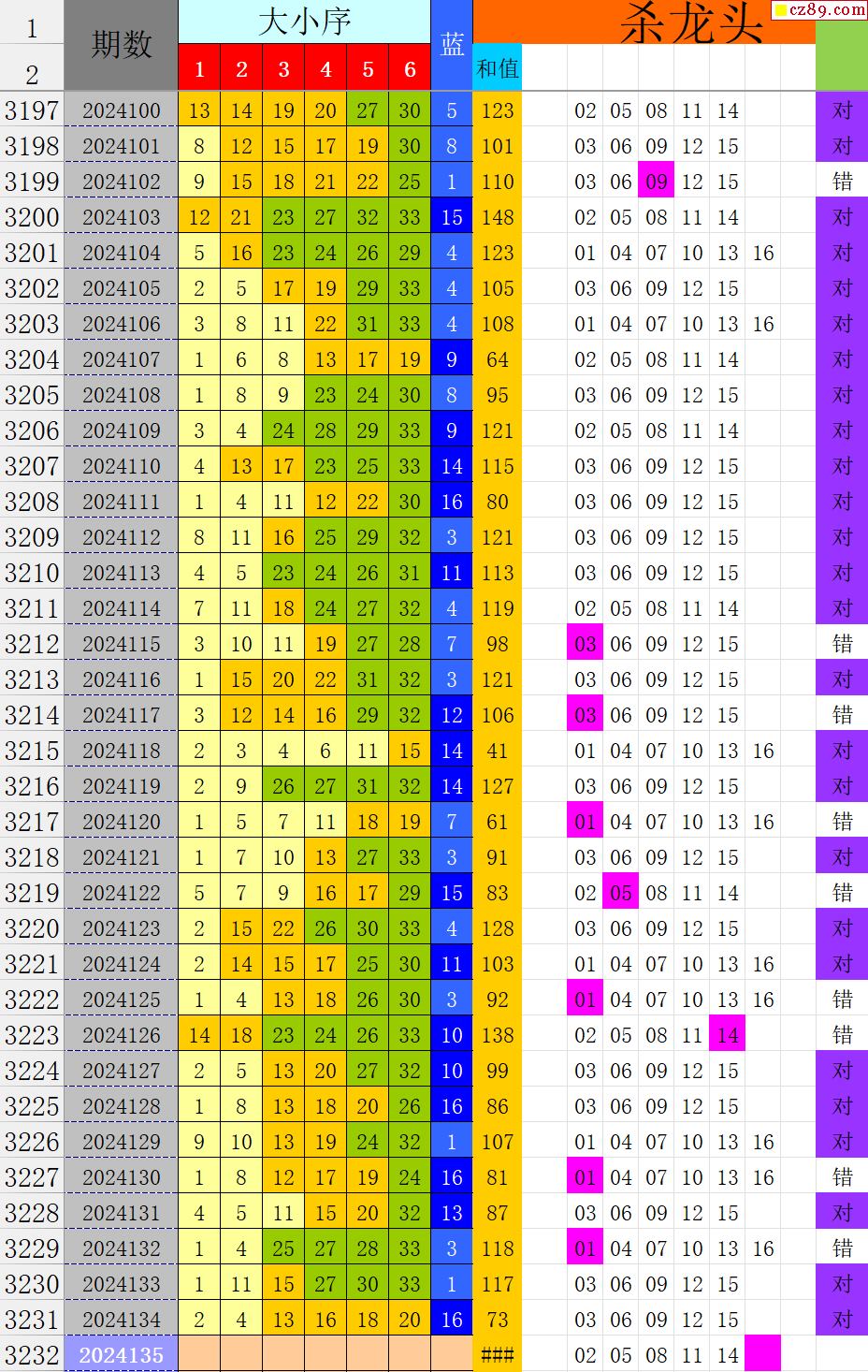 24年135期秋雨龙头凤尾走势图表